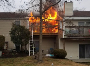 Cherry Hill Firefighters responded to a reported apartment fire. Arriving on the location they discovered a 2nd-floor apartment fully involved.